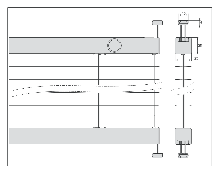 Achtung! Zwischen der Oberschiene und ersten Lamelle entsteht ein Lichtspalt von ca. 5 mm.